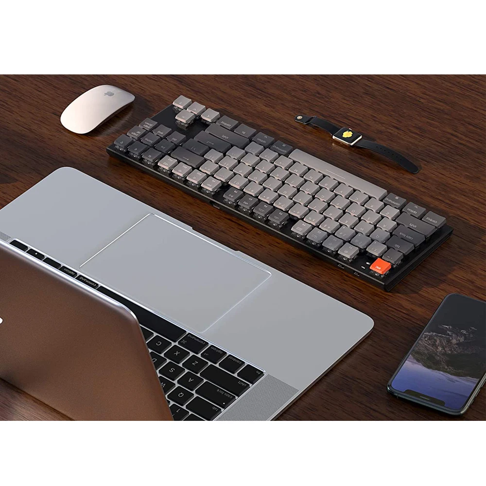 Keychron K1 Mechanical Keyboard104 Key RGB Wireless Mechanical Keyboards Low Profile Mechanical Keyboard Ultra-Thin Bluetooth KeyboardAnti GhostingN-Key RolloverWired Keyboard for Mac and Windows. Connect the K1 with up to 3 devices via Bluetooth or to a single device with the USB Type-C wired option. Pair it up with your smartphone laptop and iPad and switch amongst the devices swiftly that is best for home office and light gaming uses.